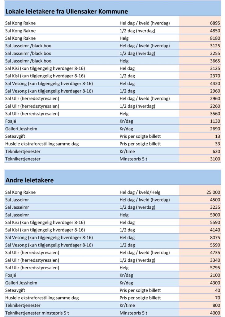 Utleiepriser oppdatert januar 2026